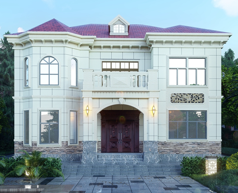 睿婕歐式風格戶型1.0版,外墻采用真石漆裝飾,線條采用EPS腰線、窗套線裝飾,檐口配EPS檐拖飾,窗戶配置為108斷橋鋁(頂配),屋頂落水系統(tǒng)采用鋁合金材料(頂配),大門采用鋅合金材料(帶門頭門柱),陽臺護欄采用水泥澆筑,造型美觀,屋頂采用多采瀝青瓦,此款歐式風格輕鋼別墅設計大氣,無露臺,大大增加室內(nèi)使用面積。