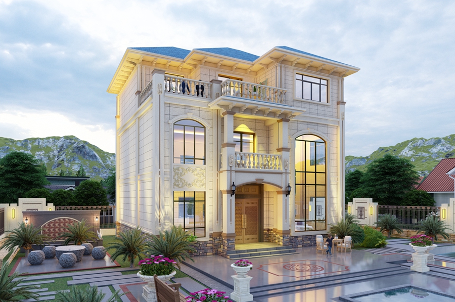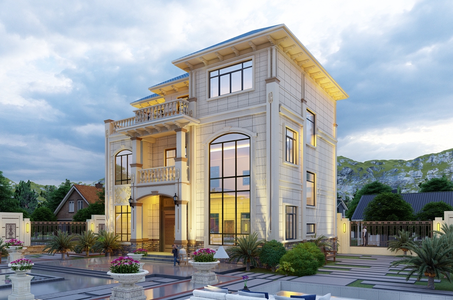 睿婕輕鋼別墅三層歐式風格精品戶型,本棟別墅占地面積120平方,三層總建筑面積360平,總計造價57萬,此款戶型為高級別墅,外部采用真石漆裝修,窗戶采用108斷橋鋁,是成功人士首選擇別墅。